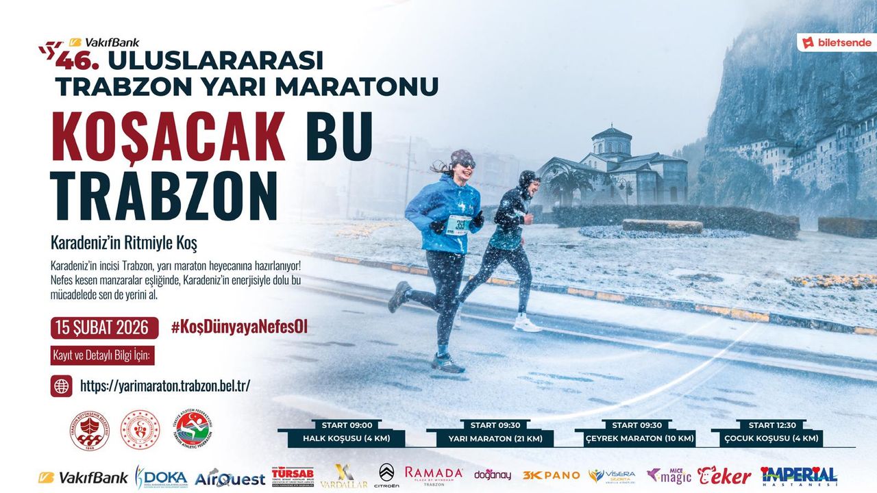 "Koş Dünyaya Nefes Ol" sloganıyla yola çıkan Vakıfbank 46. Uluslararası Trabzon Yarı Maratonu, 15 Şubat 2026 Pazar günü start alıyor.