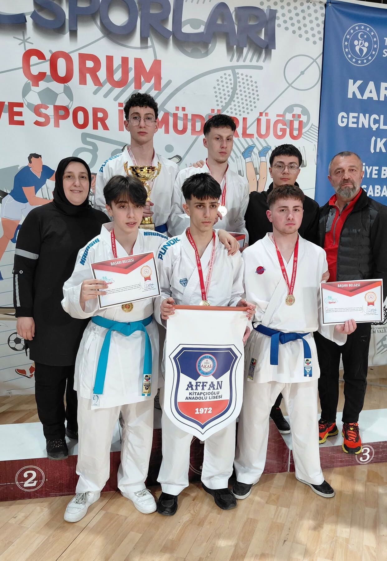 Şampiyonada mücadele eden Miraç Akbayrak, Nebil Çelebi ve Kağan Bayraktar, Baran Karabina ve Yusuf Kayra ’ın dan oluşan Trabzon Affan Kitapçıoğlu Lisesi Karate Takımı,üstün performans sergileyerek Türkiye Şampiyonu oldu.