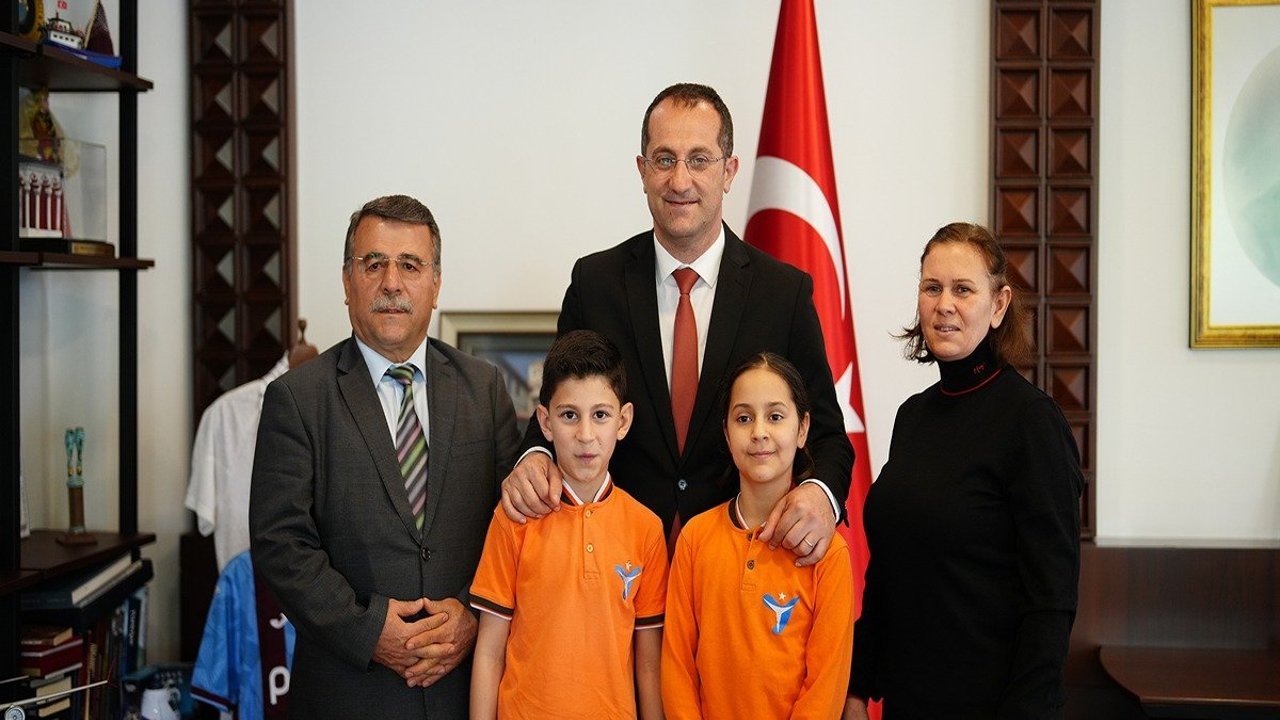 23 Nisan etkinlikleri kapsamında Yıldızlı TOKİ İlkokulu 4/F sınıfı öğrencileri Ayşe Ergüden ve Yusuf Sağır, sınıf öğretmenleri Ayten Şimşek ve Okul Müdürü Engin Ocak ile birlikte Akçaabat Belediye Başkanı Osman Nuri Ekim’i ziyaret etti. Başkanlık makamına oturan öğrenciler, bu anlamlı günde belediye başkanlığı görevini temsili olarak üstlenmenin mutluluğunu yaşadı.