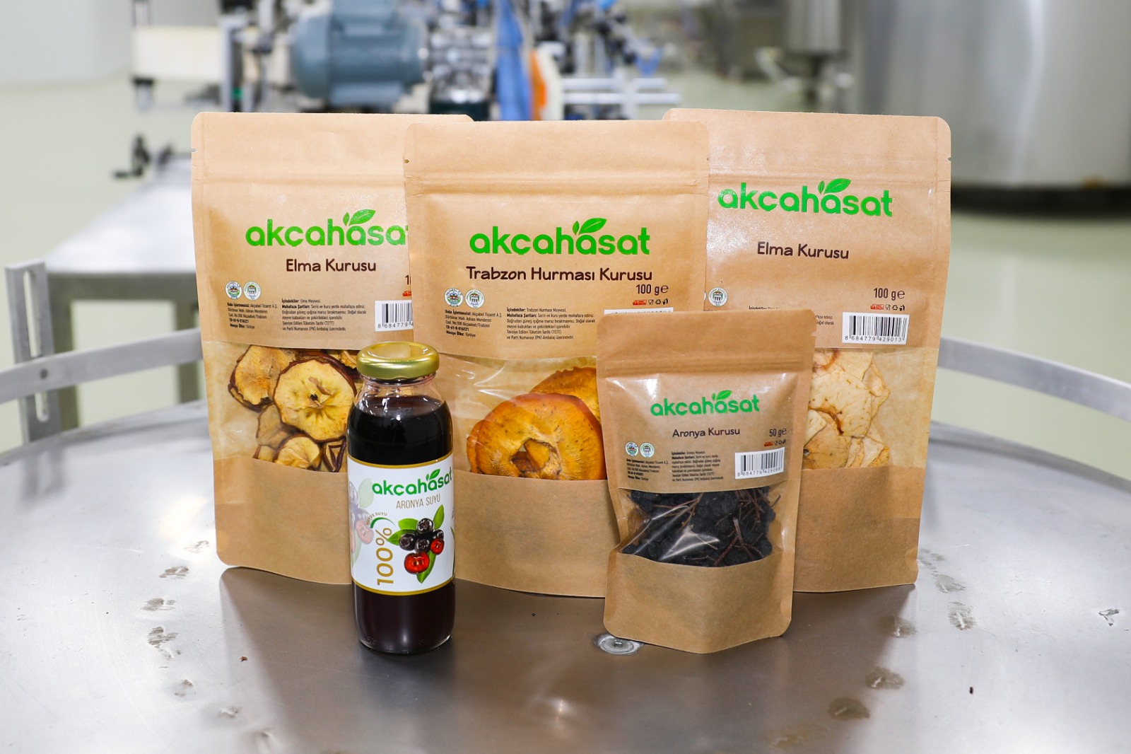 Trabzon hurması, aronya ve kokulu üzüm gibi yöresel ürünler; kurutma, işleme, meyve suyu, reçel ve marmelat gibi ürün süreçlerinden geçirilerek AKÇAHASAT markasıyla tüketiciyle buluşturuluyor.