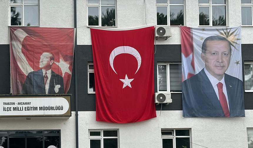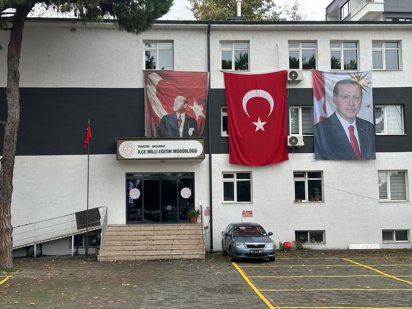 Akçaabat İlçe Milli Eğitim Müdürlüğü binasına asılan görsellerde, Cumhuriyetimizin kurucusu Gazi Mustafa Kemal Atatürk’ün posteri hem diğerlerine göre daha küçük hem de kırışık bir şekilde yer aldı. Aynı binada yer alan Türk Bayrağı ve Cumhurbaşkanı Recep Tayyip Erdoğan’ın posteri ise daha büyük ve düzgün bir şekilde sergilendi.