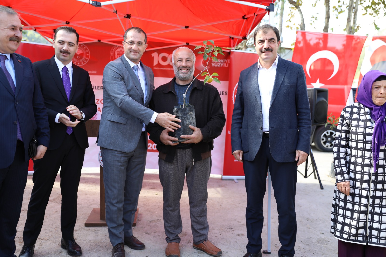Başkan Osman Nuri Ekim: “İlçemizde tarımsal üretimi desteklemek, çiftçilerimizi daha verimli üretime yönlendirmek ve yerelde kalkınmayı güçlendirmek amacıyla Tarım ve Orman İl Müdürlüğümüzle birçok ortak proje yürütüyoruz. Bugün burada 43 çiftçimize 2.800 adet Trabzon hurması fidanı dağıtarak yeni bahçelerin kurulmasına vesile oluyoruz.