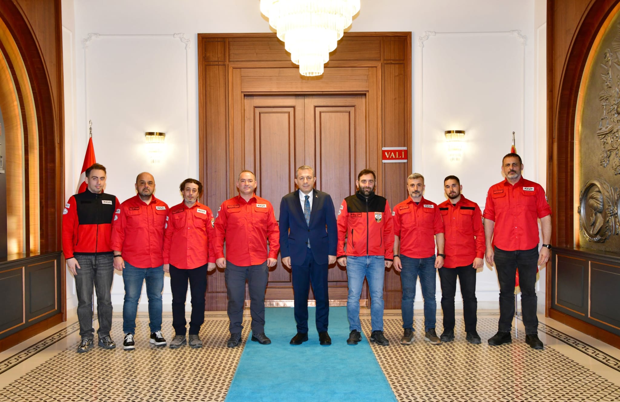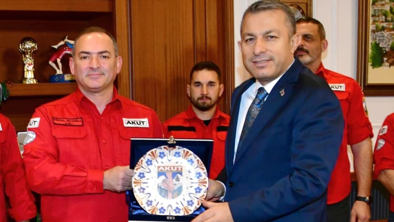 AKUT'un çalışmaları hakkında bilgi alan Vali Tahir Şahin, arama kurtarma faaliyetlerinin önemine vurgu yaparak, ekibimize çalışmalarında başarılar diledi.