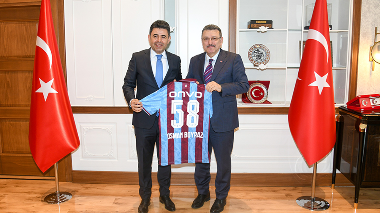 Ulaştırma ve Altyapı Bakan Yardımcısı Osman Boyraz, Trabzon Büyükşehir Belediye Başkanı Ahmet Metin Genç'i ziyaret etti. Büyükşehir Belediyesi'nin Atapark’taki ana hizmet binasında gerçekleşen ziyarette, Trabzon’daki ulaşım ve altyapı yatırımlarına dair görüş alışverişinde bulunuldu. Ziyaretten duyduğu memnuniyeti dile getiren Başkan Genç, Ulaştırma ve Altyapı Bakanlığı’nın Trabzon’a önemli yatırımlar yaptığını hatırlatarak, "Başta şehrimizin evladı Ulaştırma ve Altyapı Bakanımız Sayın Abdulkadir Uraloğlu olmak üzere, şehrimizin ihtiyaç duyduğu projelerin hayata geçirilmesinde emeği geçen bütün ekibine teşekkür ediyorum" dedi. Bakan Yardımcısı Osman Boyraz ise Trabzon’un gelişimi açısından önem taşıyan projelere bakanlık olarak destek vermeyi sürdüreceklerini ifade etti. Ziyaretin sonunda Başkan Genç, Bakan Yardımcısı Boyraz’a telkari fincan takımı ve isminin yazılı olduğu Trabzonspor forması hediye etti.