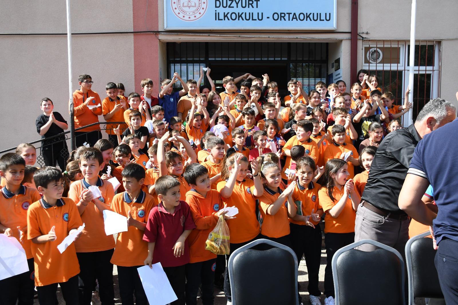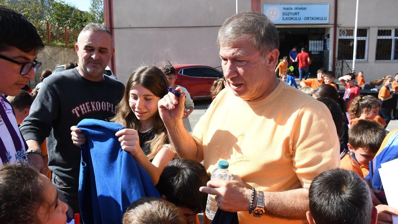 Kazaz Grup Yönetim Kurulu Başkanı ve aynı zamanda eski hakem Necati Kazaz önderliğinde gerçekleştirilen ziyarette, Trabzonspor’un efsanesi Hami Mandıralı ve Türk futbolunun unutulmaz golcüsü Tanju Çolak, öğrencilerle bir araya geldi. Ziyarette Okul Müdürü Mehmet Kara ve Düzyurt Muhtarı Lokman Mengüç de yer aldı. Kazaz Grup, okula forma hediye etti.