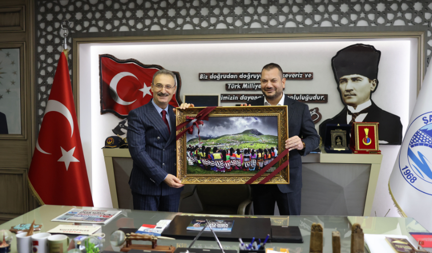 Belediye Başkanı Refik Kurukız da Başkan Ertuğrul Doğan’a yöresel ürünler takdim ederek ziyaretten duyduğu memnuniyeti dile getirdi. Ziyaret, çekilen hatıra fotoğrafının ardından sona erdi.