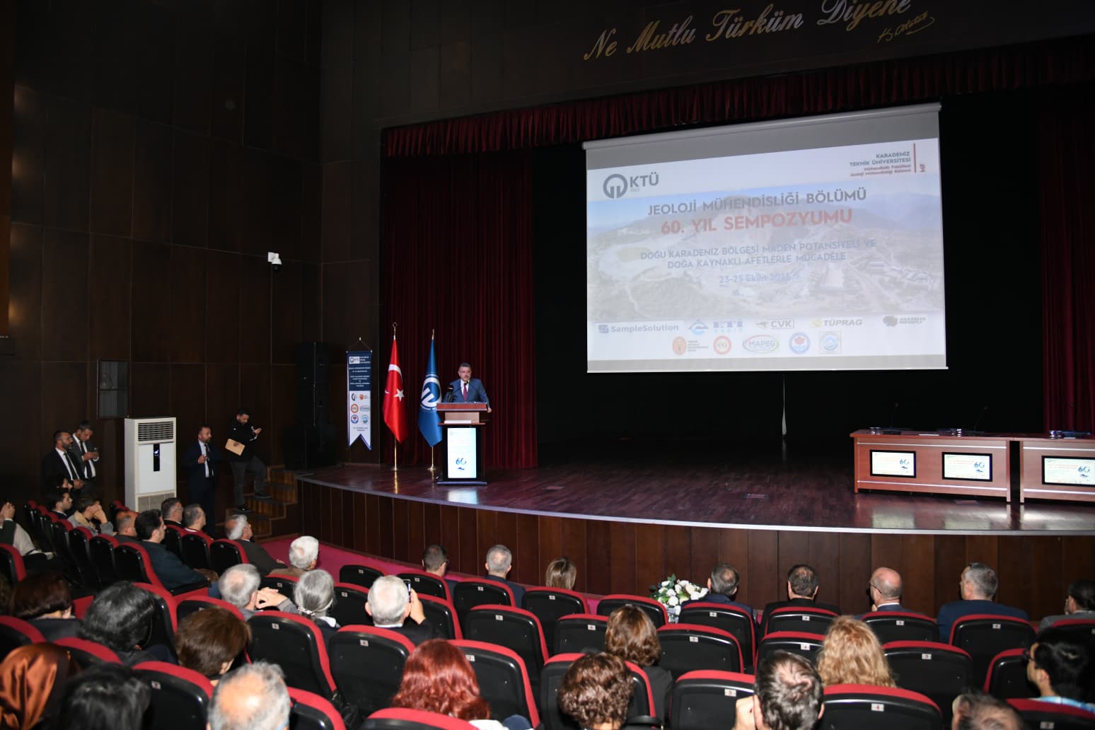 Büyükşehir Belediye Başkanı Ahmet Metin Genç, “Jeoloji Mühendisliği Bölümü’nün kuruluşunun 60. yılını kutluyorum, 61. yılında da burada olacağımın sözünü veriyorum. Sempozyum konusu çok önemli. Bilimden istifade etmek, bilimin oluşturduğu bilgiyi icraata yansıtmak çok kıymetli. Bu manada iyi ki kadim şehrimizde böyle bir üniversitemiz var. KTÜ ile her zaman gurur duyuyorum, burada üretilen bilimden de, bilgiden de, verilerden de çokça istifade etmenin mutluluğunu yaşıyorum. Değerli konuşmacılarımız jeolojinin sadece toprak bilimi ile dar bir kapsam olamayacağını ifade ettiler. Toprak sadece üzerine bastığımız bir toprak parçası değildir. Bundan çok öte anlam ifade ediyor.