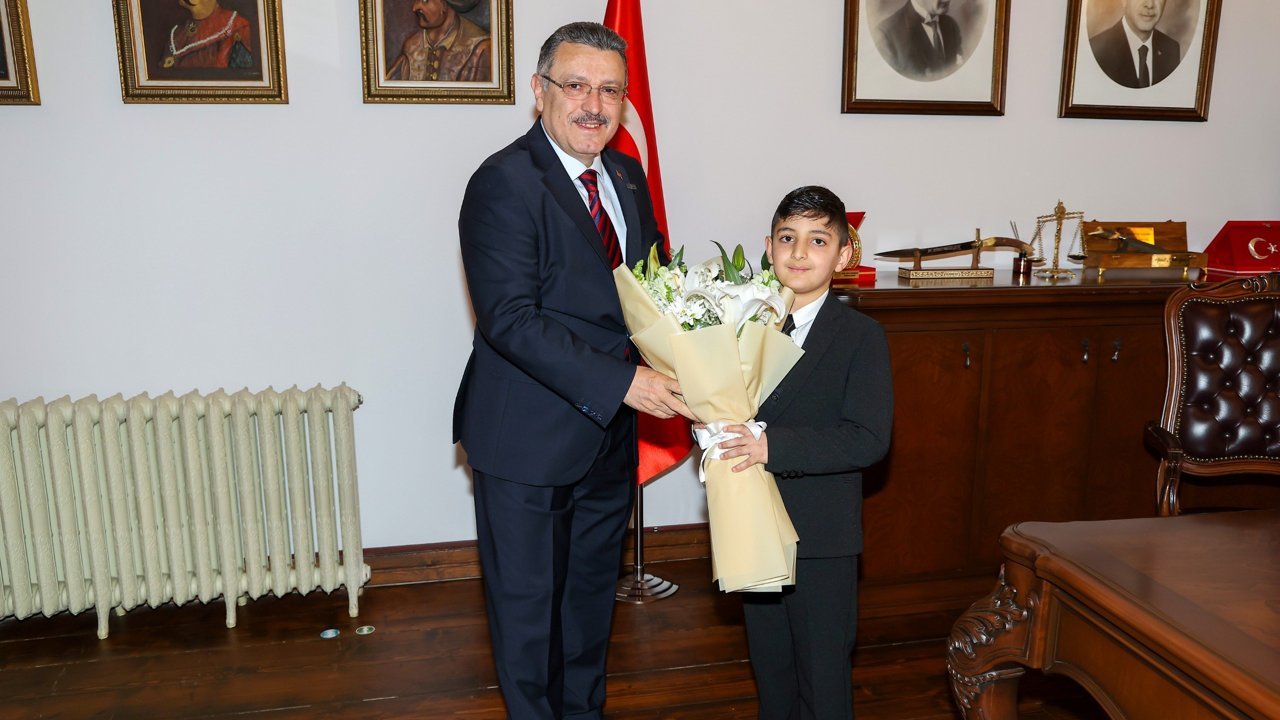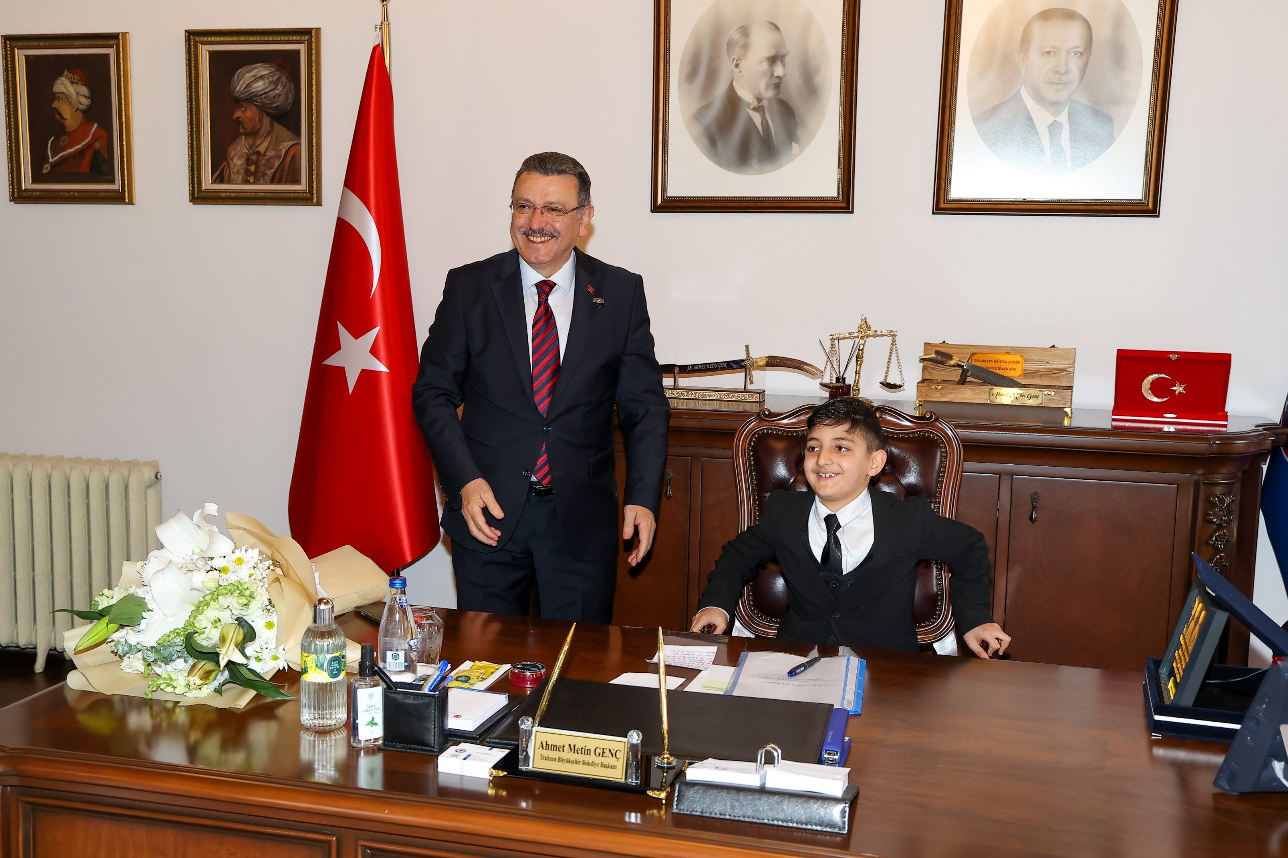 Trabzon Büyükşehir Belediye Başkanı Ahmet Metin Genç, 23 Nisan Ulusal Egemenlik ve Çocuk Bayramı kapsamında makam koltuğunu temsili olarak Dumlupınar İlkokulu 3-B sınıfı öğrencisi Hamza Arslan’a devretti.