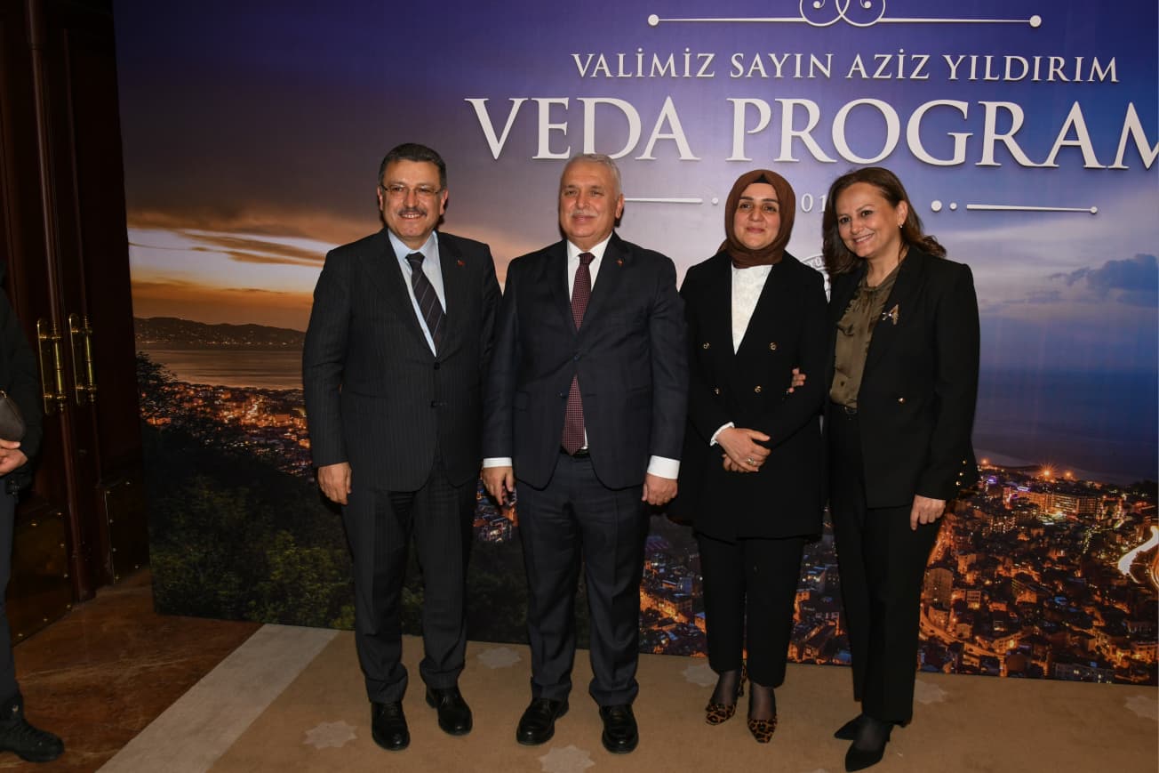 Vali Aziz Yıldırım ise, “Cumhurbaşkanımız Sayın Recep Tayyip Erdoğan’ın takdirleriyle yaklaşık iki buçuk yıldır onurla yürüttüğüm Trabzon Valiliği görevinden yine Sayın Cumhurbaşkanımızın takdirleriyle ayrılıyorum. Fatih’in fethettiği, Yavuz’un yönettiği, Kanuni’nin doğup büyüdüğü; tarih, kültür ve turizmin kadim şehri ata memleketim Trabzon’da görev yapmış olmak benim için daima büyük bir onur ve mutluluk kaynağı olmuştur.