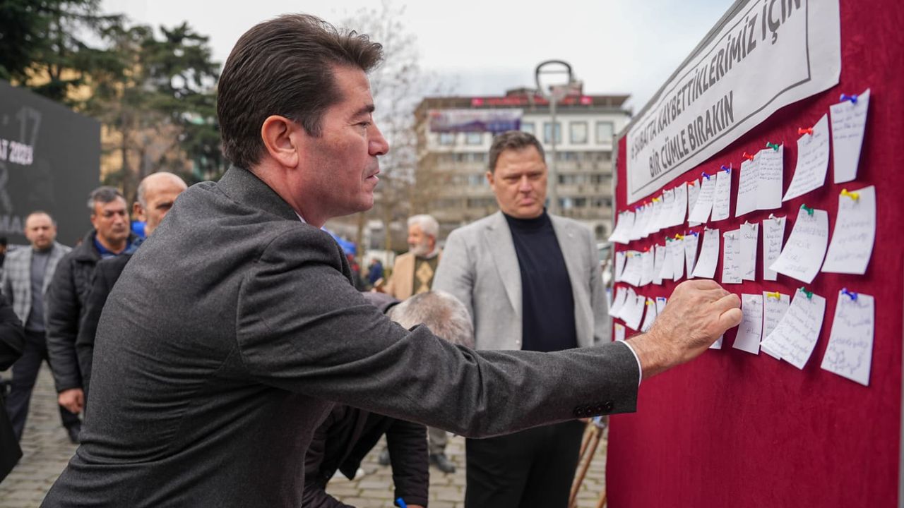 Başkan Kaya etkinlik alanında kurulan panoya, “6 Şubat en acı gün. Acının yorulduğu bir gün. Allah’ım bir daha yaşatmasın” cümlesini yazdı.
