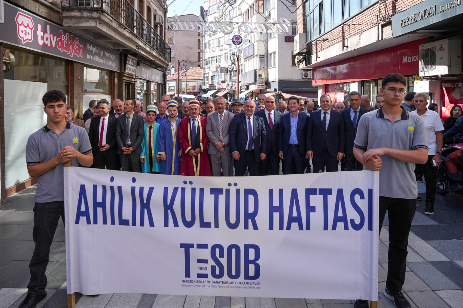 Uzunsokak’tan başlayan ve Meydan Parkı’nda sona eren kortej yürüyüşüyle başlayan Ahilik Haftası kutlamalarına Başkan Kaya’nın yanı sıra Trabzon Valisi Aziz Yıldırım, Trabzon Büyükşehir Belediye Başkanı Ahmet Metin Genç, TESOB Başkanı Metin Kara, TTSO Başkanı Erkut Çelebi, protokol üyeleri ve vatandaşlar katıldı.