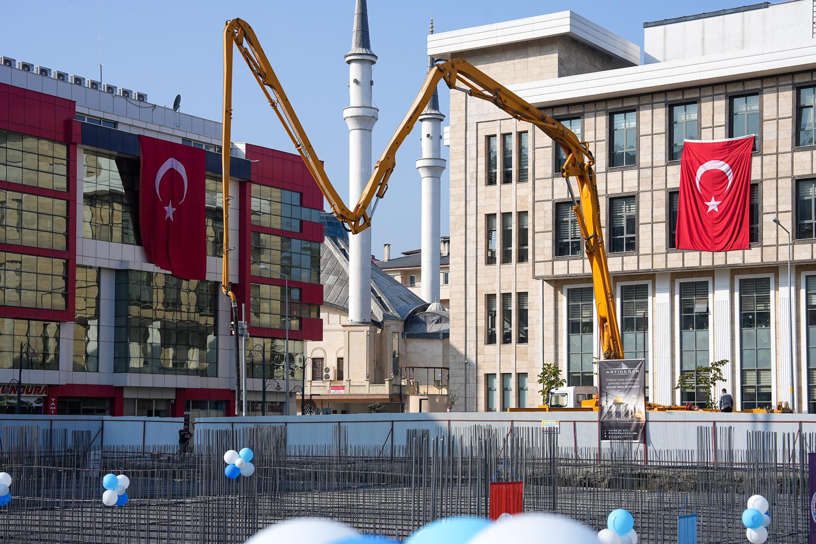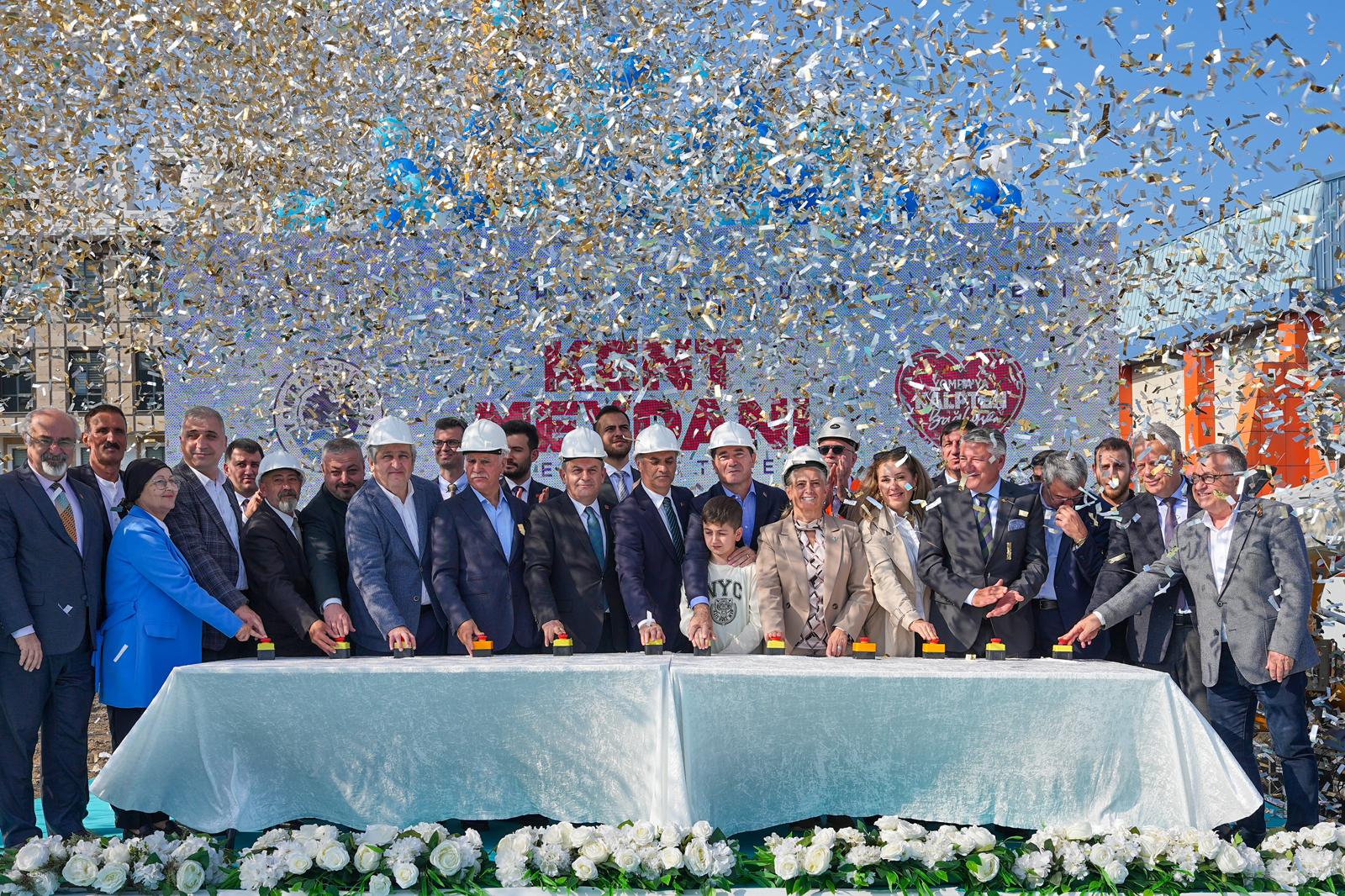Protokol konuşmalarının ardından Yomra Kent Meydanı’nın temeli alkışlar eşliğinde atıldı