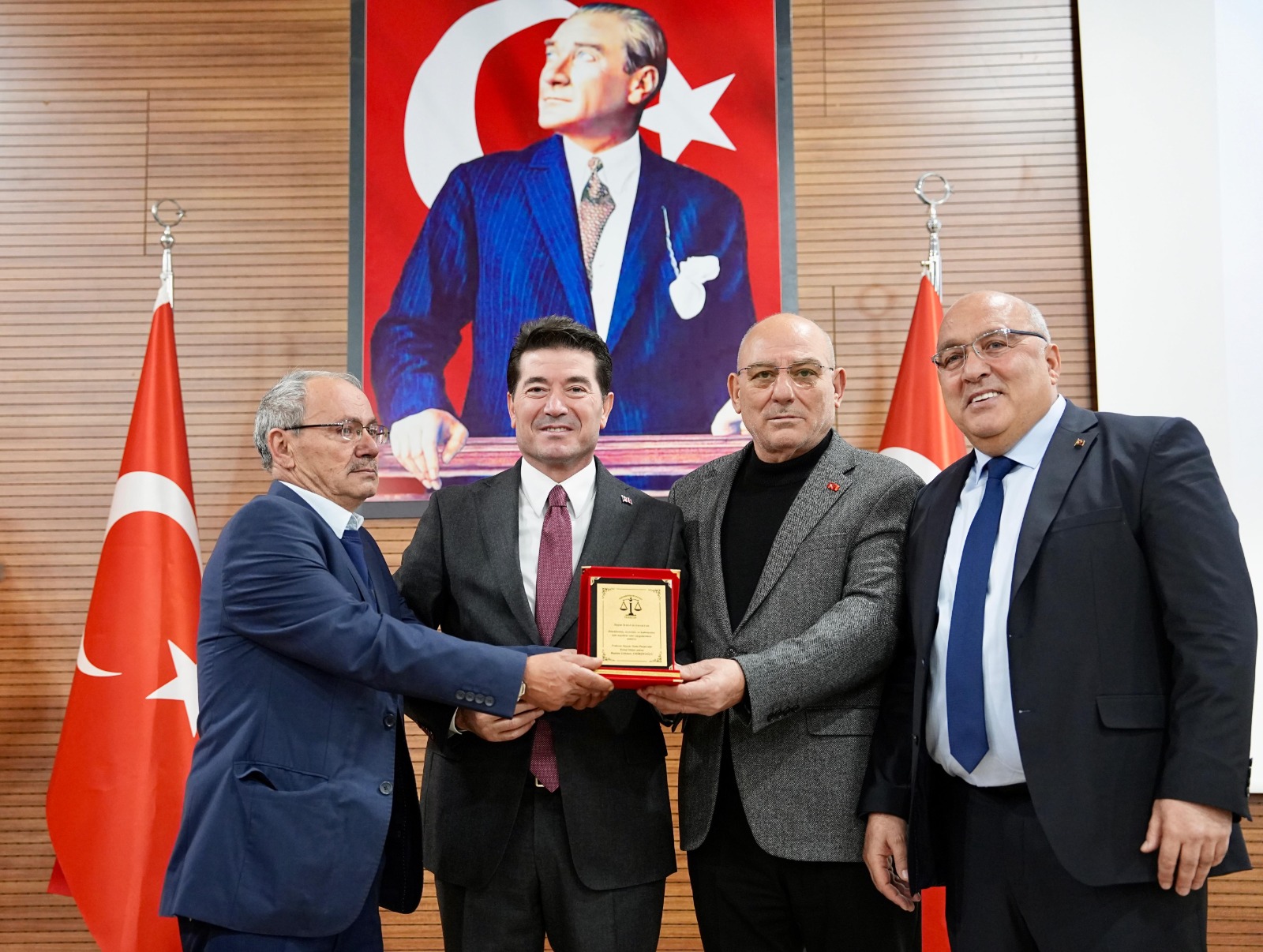 Programın sonunda Başkan Kaya, Trabzon Seyyar Semt Pazarcılar Esnaf Odası’nın vefat etmiş kurucu başkanı Aziz Yılmaz adına eşine plaket takdim ederken, Türkiye Sebzeciler Meyveciler Seyyar Pazarcılar Federasyonu Başkanı Ali Karaca’ya da telkari işçiliği ile yapılmış kahve fincan seti hediye etti.