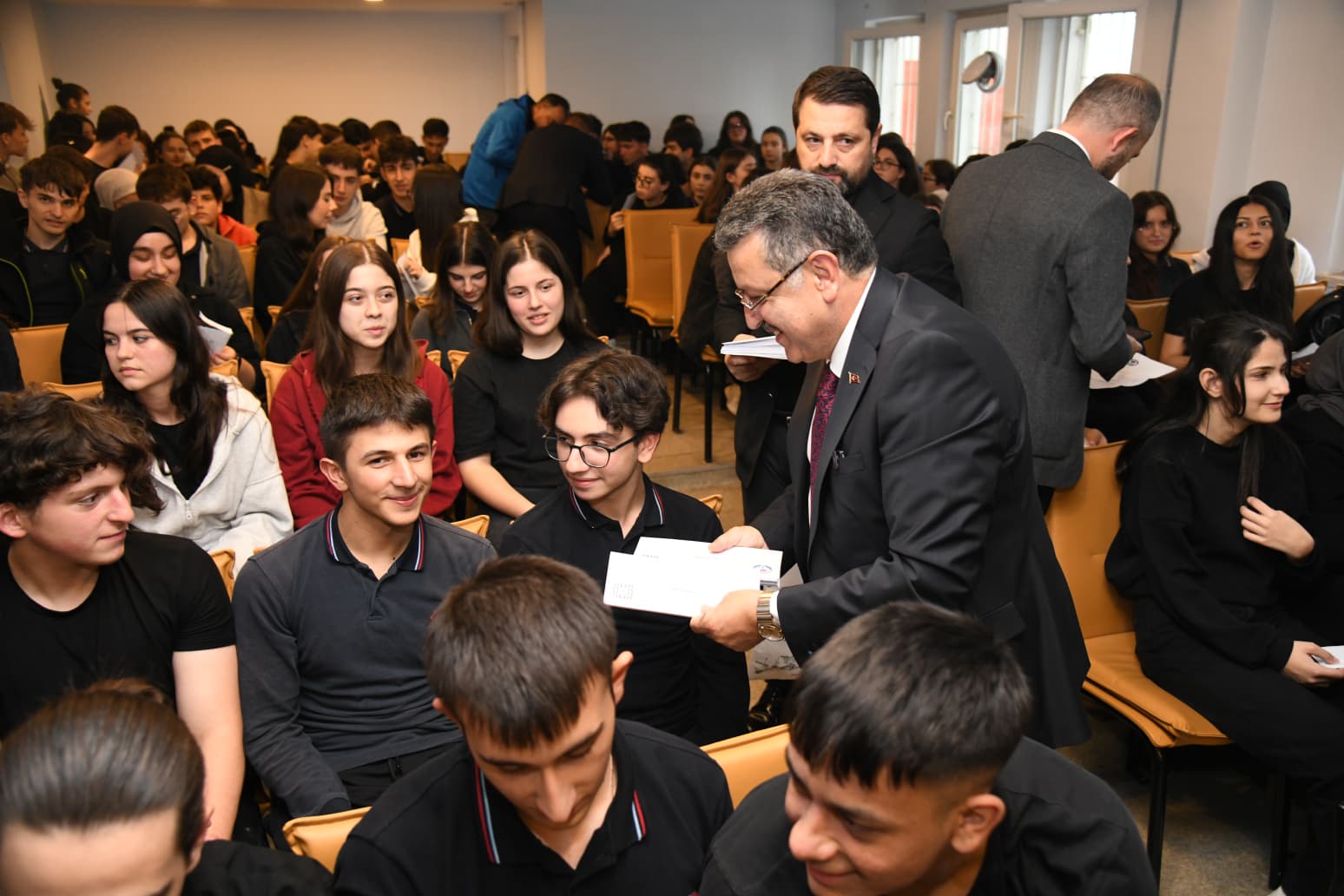 Başkan Genç, sözlerini şöyle sürdürdü: “Şu anda Avrupa'nın nüfusunun çok yaşlandığını gördüğümüzde, özellikle toplumun, milletin, devletin üreterek ileriye gitmesinin zorunlu olduğu bir dönemde, çağla uyumlu bir şekilde nitelikli, kaliteli bir gençliğimizin olması bizim en büyük gücümüz. Cumhuriyetimizin kurucusu Mustafa Kemal Atatürk, tam bağımsız Türkiye idealiyle, hedefiyle ülkemizi kurmuşsa, bütün konularda tam bağımsız olabilmek için bu gençliğin daha hızlı bir şekilde bilgiye erişimiyle yeni şeyler üretmesi lazım. O nedenle sizlerden hakikaten çok büyük bir beklenti içerisindeyiz. Şu anda sizin bir önünüzdeki jenerasyonda ülkemizin gelişmesi için, kalkınması için çokça şeyler ürettiler. Şehrimizin evladı; İHA'ların, SİHA'ların mucidi olan Selçuk Bayraktar Bey'in İstanbul'da fabrikalarını ziyaret ettiğimde, sadece bir yerleşkede 3 bin 500 genç mühendisin olduğunu gördüm. Milli duygularımız kabardı. Bu süreci siz yöneteceksiniz, siz inşa edeceksiniz. Çünkü biz sıradan bir millet, bir devlet, bir kara toprak parçasını işgal eden bir ülke değiliz. Biz daha önce yeryüzünde medeniyet kurmuş, bütün insanlara ve insanlığa hizmet etmiş bir medeniyetin mirasçılarıyız. Şu anda aynı sizin gibi gençler, Filistin'de de okuyabilmeli idi. Ama maalesef şu anda onlar inim inim inliyorlar hala. Soykırım yapan, güce erişip güçlü olan ama gücü insanlığın hayrına değil, zararına kullanan katil İsrail ve onu destekleyen Amerika yüzünden.”