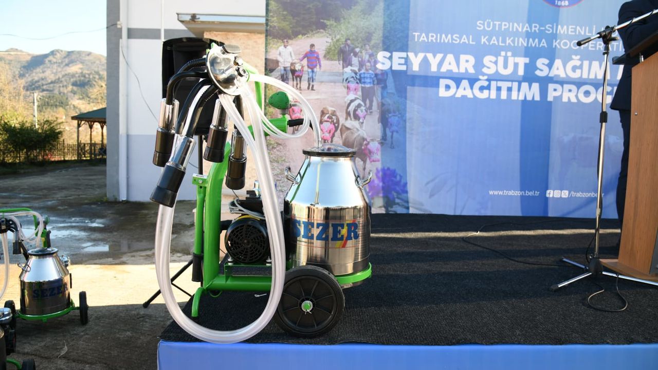 Trabzon Büyükşehir Belediyesi Tarımsal Hizmetler Dairesi Başkanlığı tarafından Şalpazarı ilçesinde süt sığırcılığı yapan 40 çiftçiye, seyyar süt sağım makinesi hibe edildi.