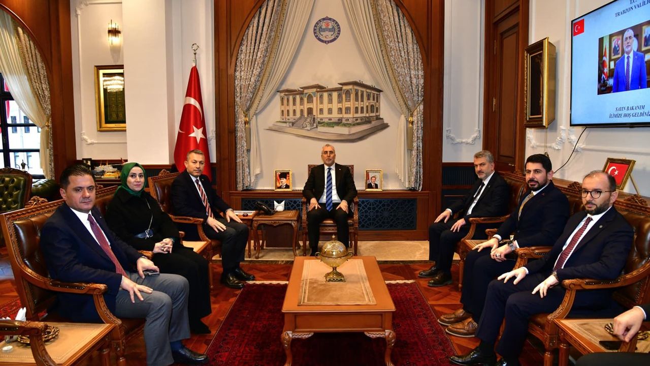 Valilik girişinde karşılanan Bakan Işıkhan, Şeref Defteri’ni imzaladı. Ardından Vali Tahir Şahin ile makamda bir araya gelerek Trabzon'da yürütülen çalışmalar hakkında bilgi aldı.