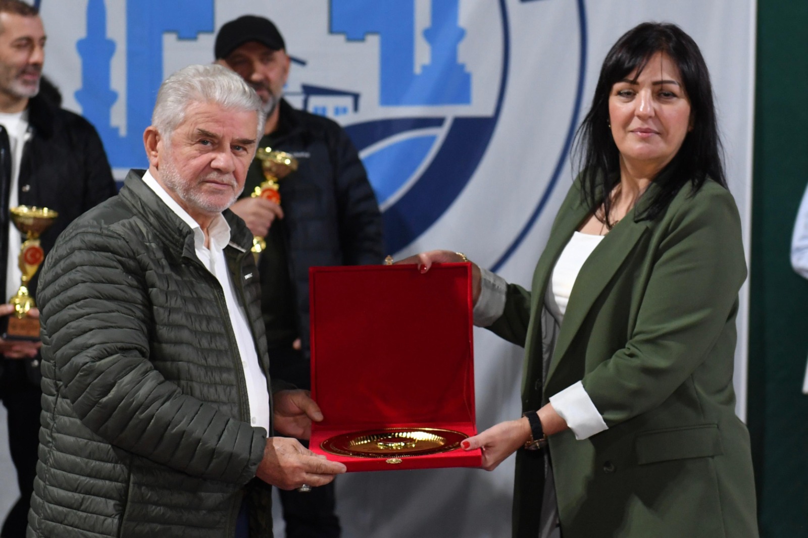 Çekişmeli maçlara sahne olan turnuvada dereceye giren sporcular, düzenlenen törenle ödüllerini aldı.