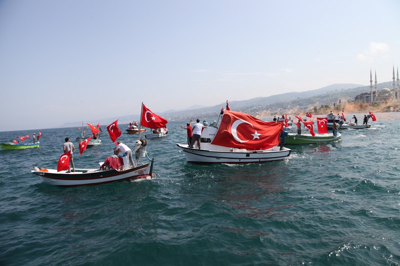 Akçaabatlı Balıkçılardan Duygulandıran Terör Protestosu