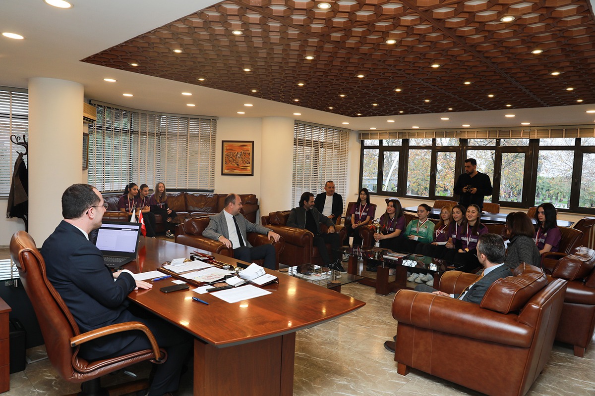 Ziyarette öğrencilerle yakından ilgilenen Başkan Ekim, sporcuları ve öğretmenleri tebrik ederek başarılarından dolayı duyduğu memnuniyeti dile getirdi.