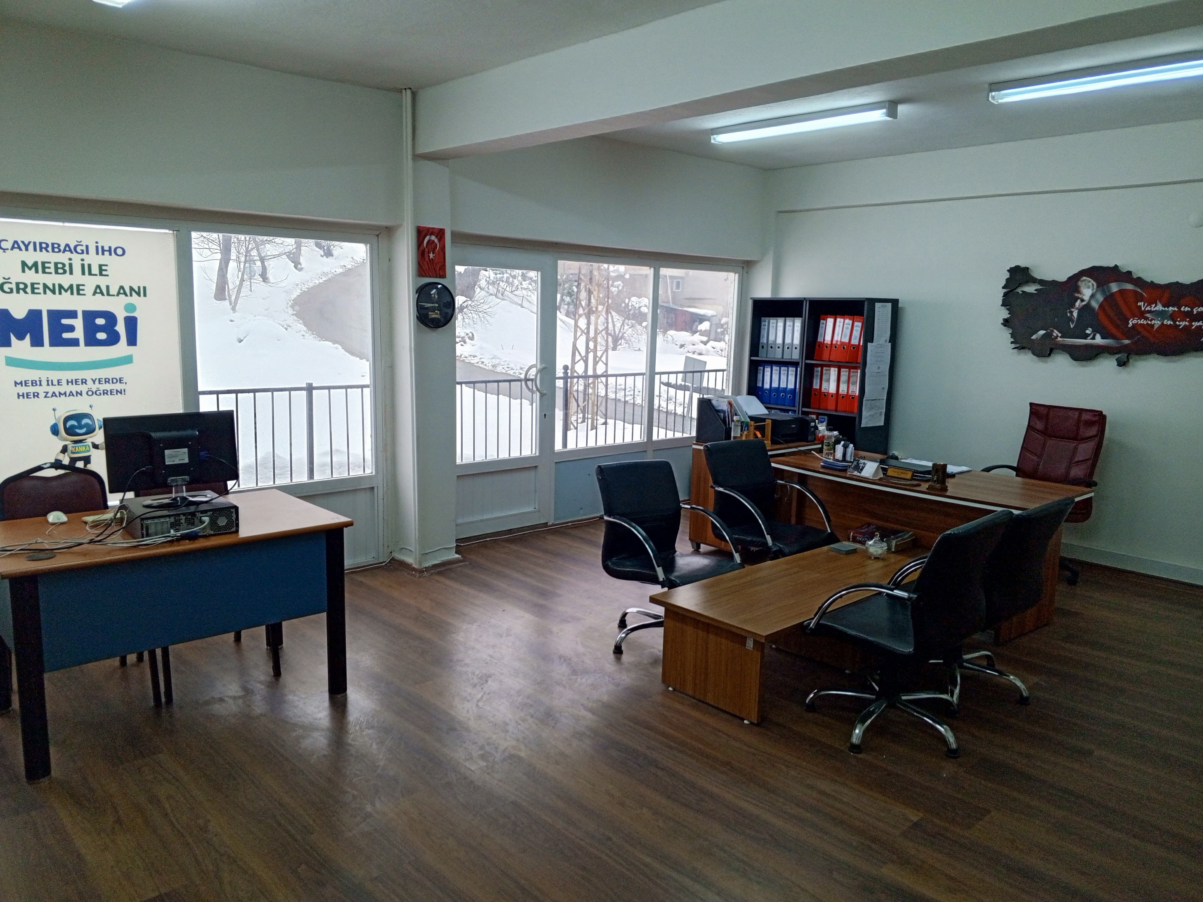Milli Eğitim Bakanlığı tarafından hazırlanan MEBİ dijital eğitim platformundan öğrencilerin daha aktif şekilde faydalanabilmesi için okul müdürü Özkan Öksüz, makam odasını öğrencilerin kullanımına açtı. Müdür Öksüz, makam odasında oluşturduğu özel uygulama alanını öğrencilerin hizmetine sunarak eğitime verdiği önemi bir kez daha ortaya koydu.