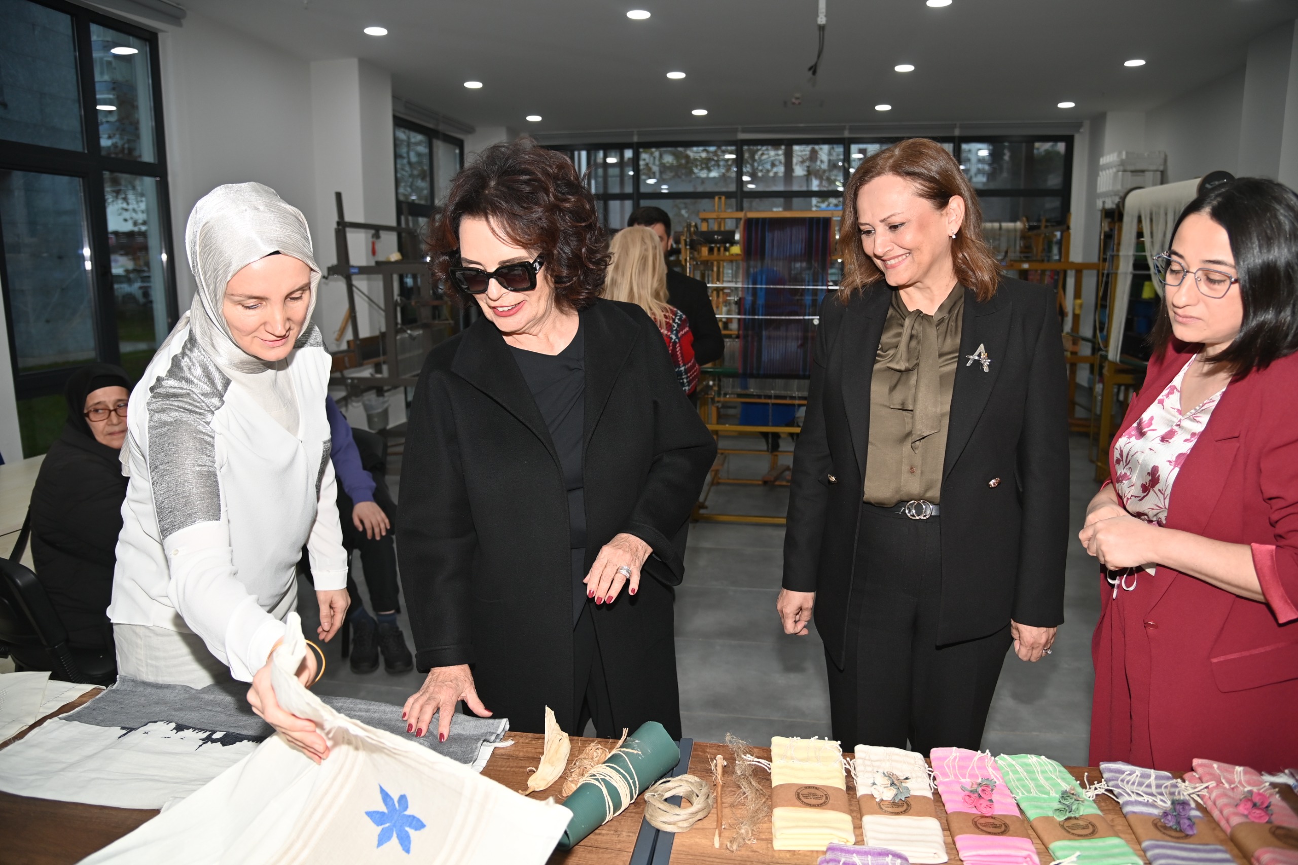 Büyükşehir Belediye Başkanı Ahmet Metin Genç’in eşi Arzu Genç ve Büyükşehir Belediyesi Sosyal Hizmetler Dairesi Başkanı Esengül Kibar tarafından karşılanan ünlü sanatçı, merkezde yapılan çalışmalar hakkında bilgi alıp, üretilen el emeği ürünleri inceledi.