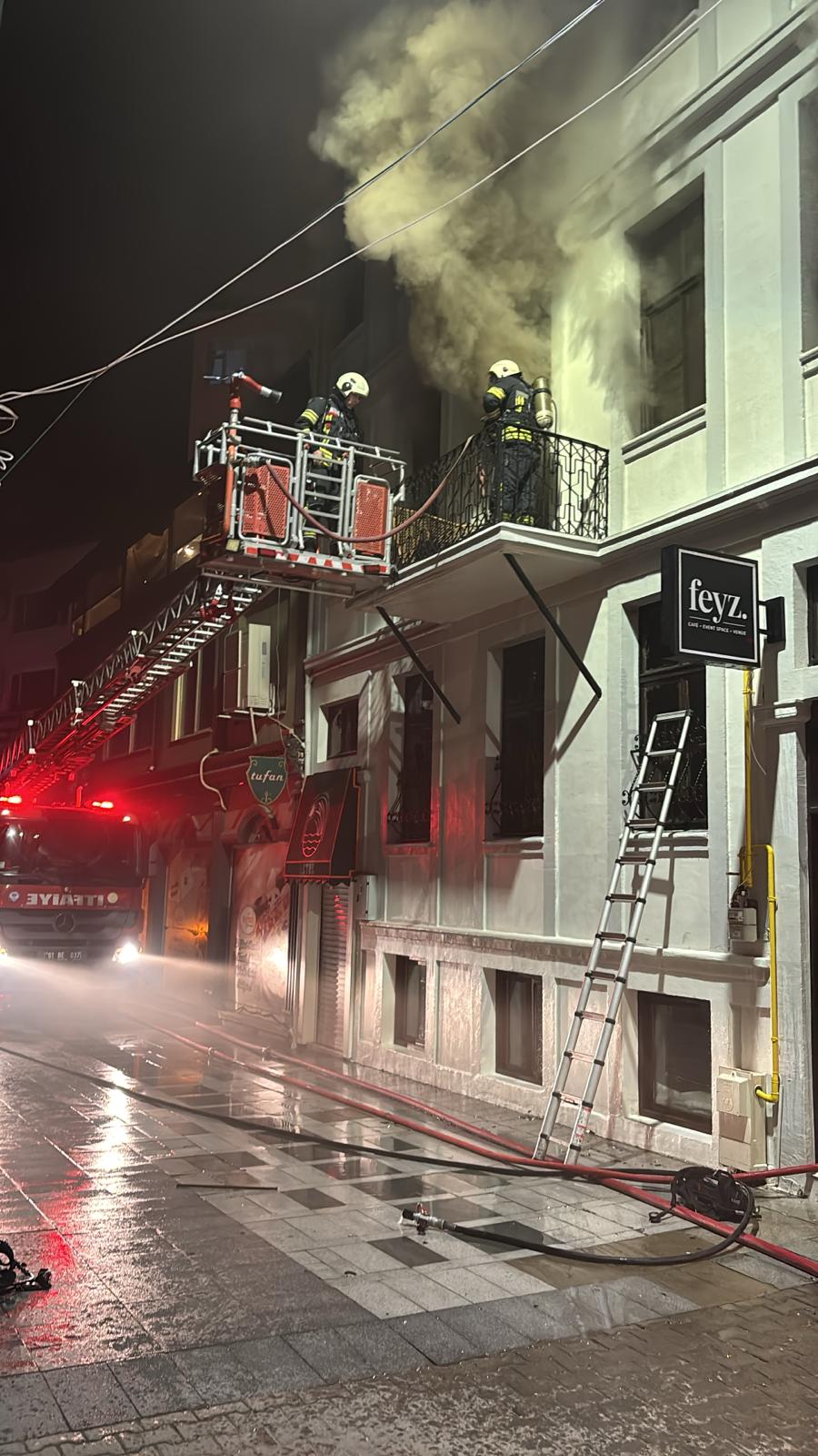 Trabzon'un Ortahisar ilçesi Cumhuriyet Mahallesi’nde, Kostaki Konağı (Trabzon Müzesi) karşısında bulunan 4 katlı ahşap binada gece yarısı yangın çıktı.