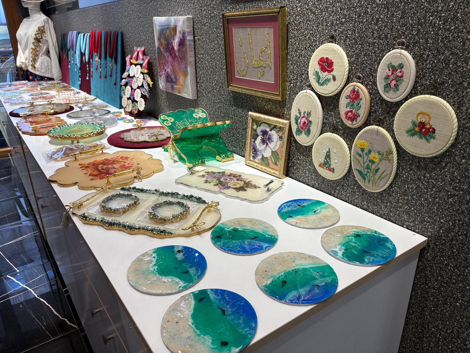Çarşının sadece bir satış noktası değil, kadınların yeteneklerini sergilediği bir sahne olduğunun altını çizen epoksi eğitmeni ve Toprak Ana Kadın Kooperatifi’nin kurucu üyelerinden Hülya Aydın, “Etamin, epoksi, dikiş, rölyef, filografi, yağlı boya, hasır örme gibi birçok el sanatını burada yapıyoruz.