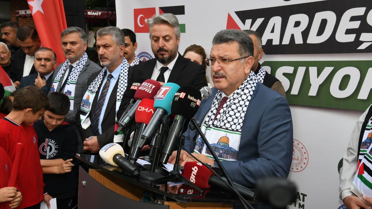 Bu felsefe ile hareket edilse dünya daha güzel hale gelir, herkese yeter. Bir barış sağlandı. Sayın Cumhurbaşkanımız bunun için çok mücadele verdi, hepimiz şahidiz. İnşallah devamı olur. Gazze'ye yardım çalışmalarını gönülden tebrik ediyorum. Büyükşehir Belediyemize, Hayrat İnsani Yardım Derneği’mize ve ilçe belediyelerimize teşekkür ediyorum” diye konuştu.
