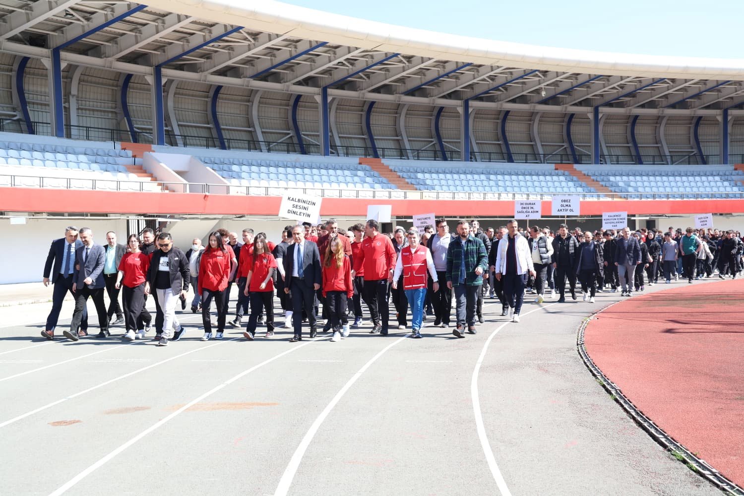 Konuşmaların ardından başlayan yürüyüşte tüm protokol mensupları ile öğrenciler Atletizm Stadı’nın pistinde yürüdüler. Yürüyüşte öğrenciler ellerindeki “Hareket et, sağlığı yakala”, “Kalbinizin sesini dinleyin”, “Obez olma aktif ol”, “Hastaneye değil sevdiklerine adım at”, “Kalbinizi koruyun, içinde sevdikleriniz var” gibi ibarelerin yer aldığı dövizlerle mesajlar verdiler.