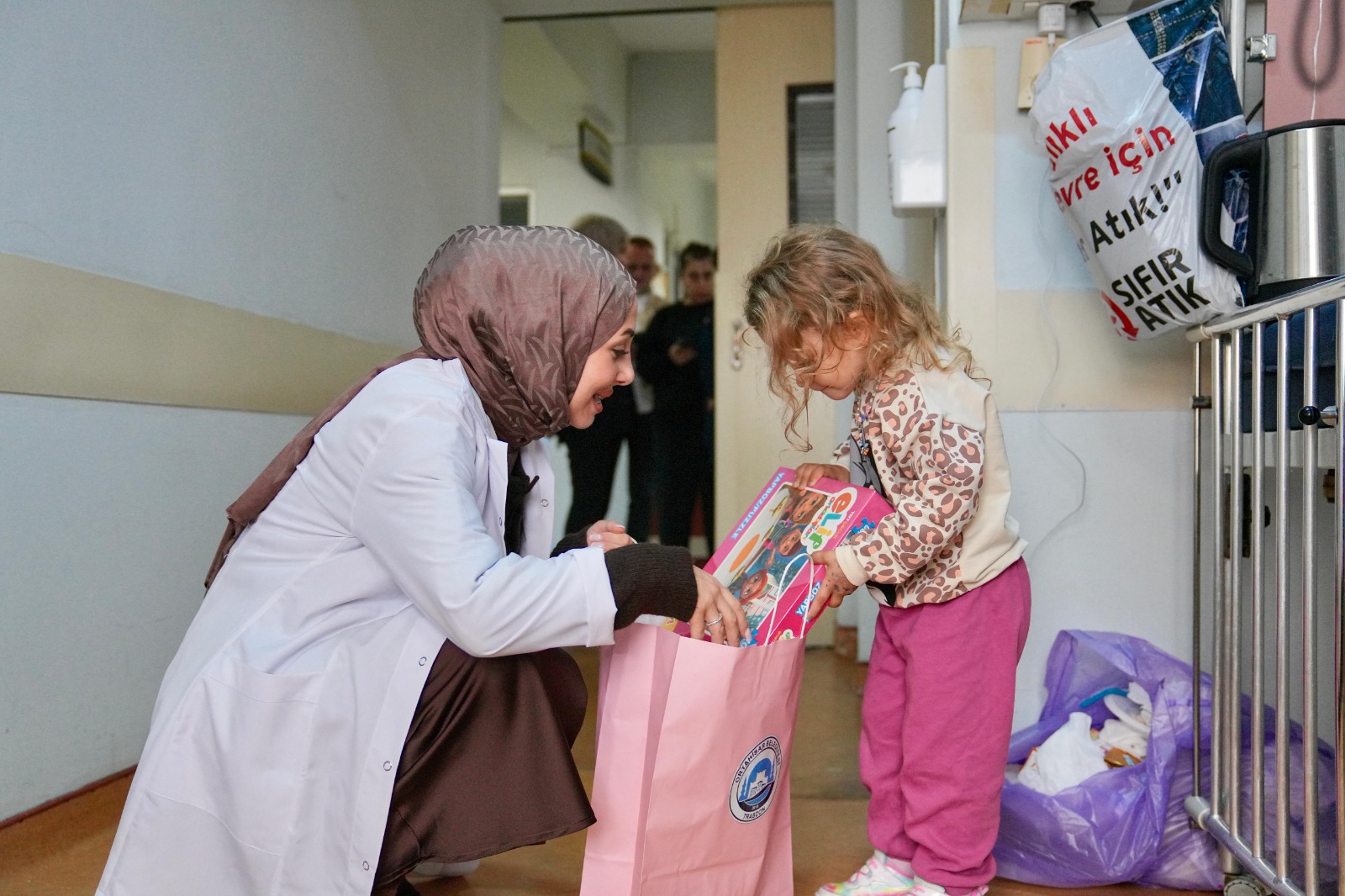 Sosyal Hizmetler Müdürlüğü’nde görevli hemşireler, lösemiyi yenen diyabet hastası 10 yaşındaki Ali Hamza Kacamer’i 1 Nolu Erdoğdu Mahallesi’ndeki evinde ziyaret ederek Başkan Kaya’nın gönderdiği tablet, bot ve yapbozdan oluşan hediye çantasını ulaştırdı. Hediyeleri ve ilgilerinden dolayı Ali Hamza ve ailesi memnuniyetini dile getirerek Başkan Kaya’ya teşekkürlerini sundular.