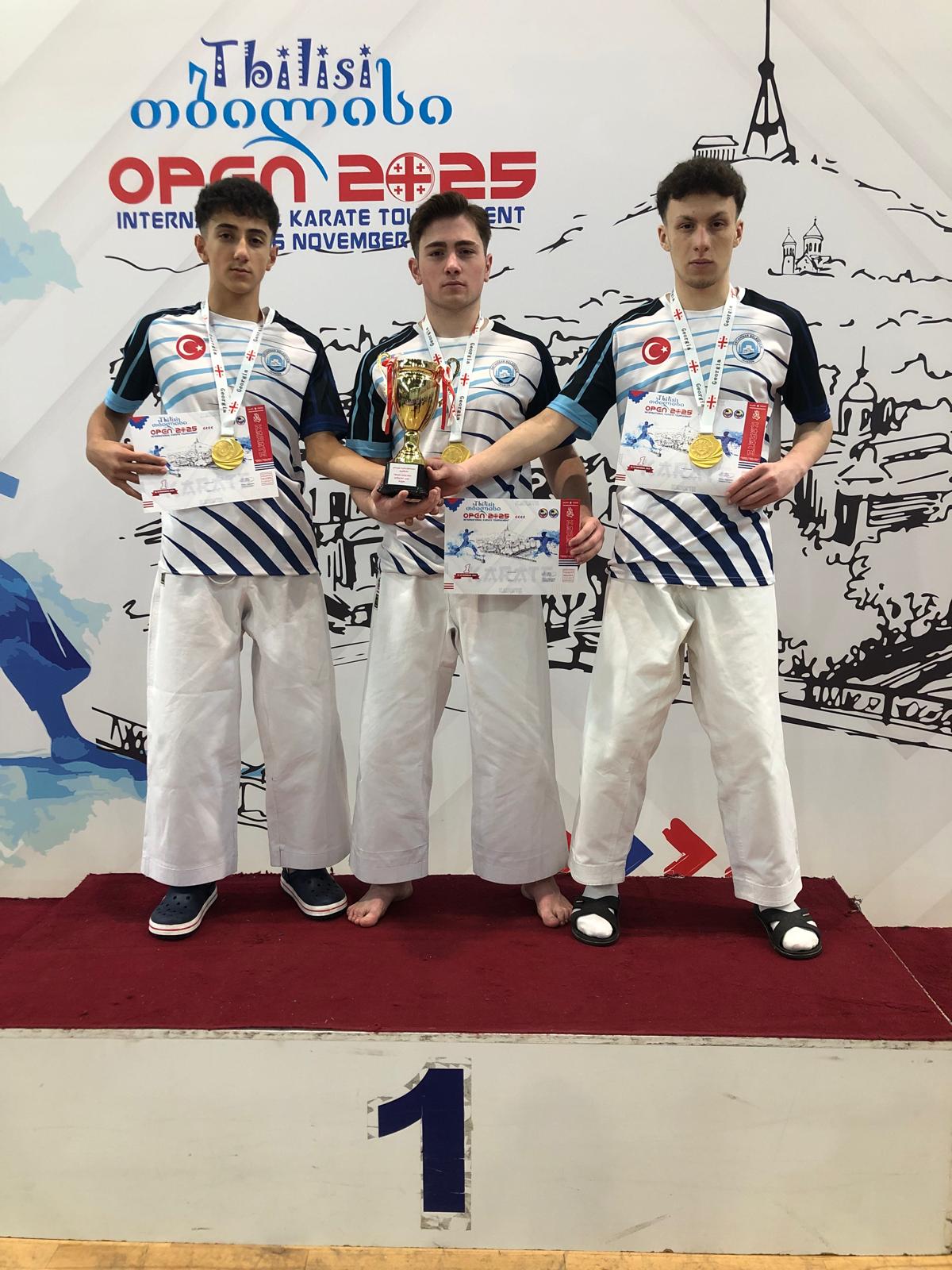 Tiflis Open Karate Turnuvası’nda Miraç Akbayrak Büyük Erkekler, Kağan Bayraktar da Genç Erkekler kata kategorilerinde 1’incisi olurken, Kata Takımı da turnuvayı birincilikle tamamladı.