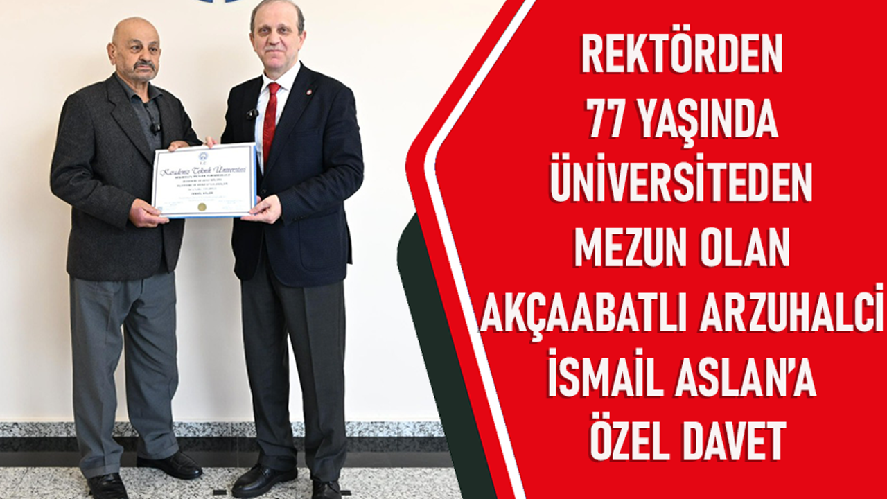 DHA’nın ‘77 yaşındaki arzuhalcinin üniversite azmi’ başlıklı haberi sonrası ilgi odağı olan İsmail Aslan, özel davet üzerine KTÜ Rektörü Prof. Dr. Hamdullah Çuvalcı’nın konuğu oldu. Prof. Dr. Çuvalcı, Aslan’ı makamında ağırlayarak tebriklerini iletti.