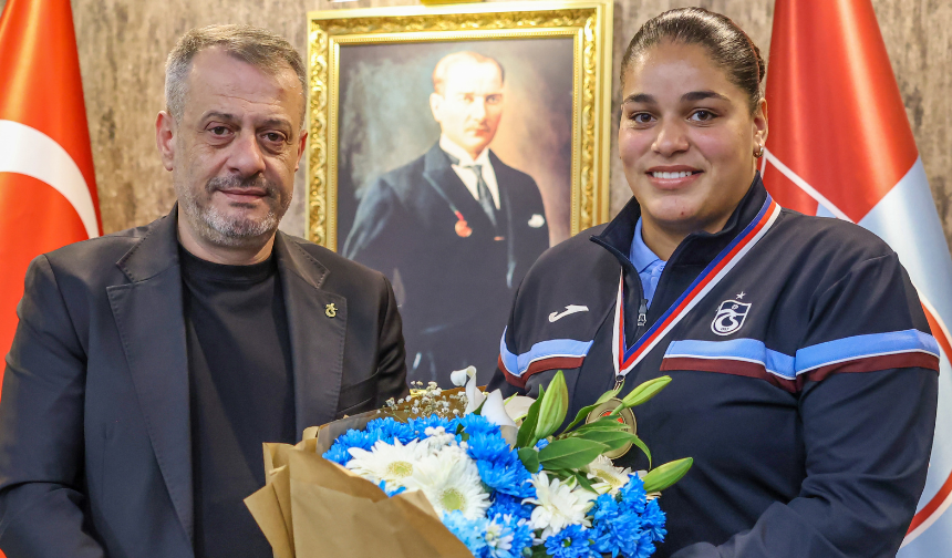 Genel Sekreterimiz Sami Karaman ve Genel Saymanımız Derviş Köz, sporcumuzu uluslararası arenada göstermiş olduğu üstün performanstan dolayı tebrik ederek kendisine çiçek takdim etti.