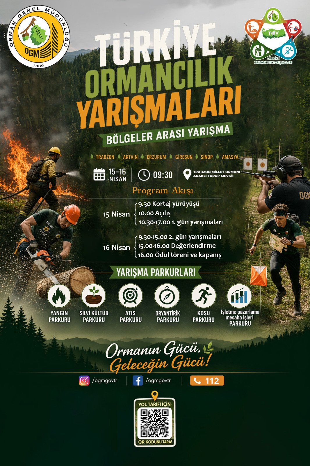 Bu anlamda Trabzon Orman Bölge Müdürlüğü, Amasya Orman Bölge Müdürlüğü, Sinop Orman Bölge Müdürlüğü, Giresun Orman Bölge Müdürlüğü, Erzurum Orman Bölge Müdürlüğü ve Artvin Orman Bölge Müdürlüğünden katılacak yarışmacılar ile Araklı Millet Ormanı (Turupluk Mevkii)’nde 15-16 Nisan 2026 günü ormancılık yarışmaları yapılacaktır.