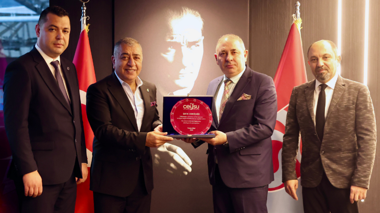 Törenin ardından, Genel Sayman Derviş Köz, Ceysu Yönetim Kurulu Temsilcisi Mehmet Tirgil’e Trabzonspor forması hediye ederken; Tirgil de Köz’e plaket takdim etti.