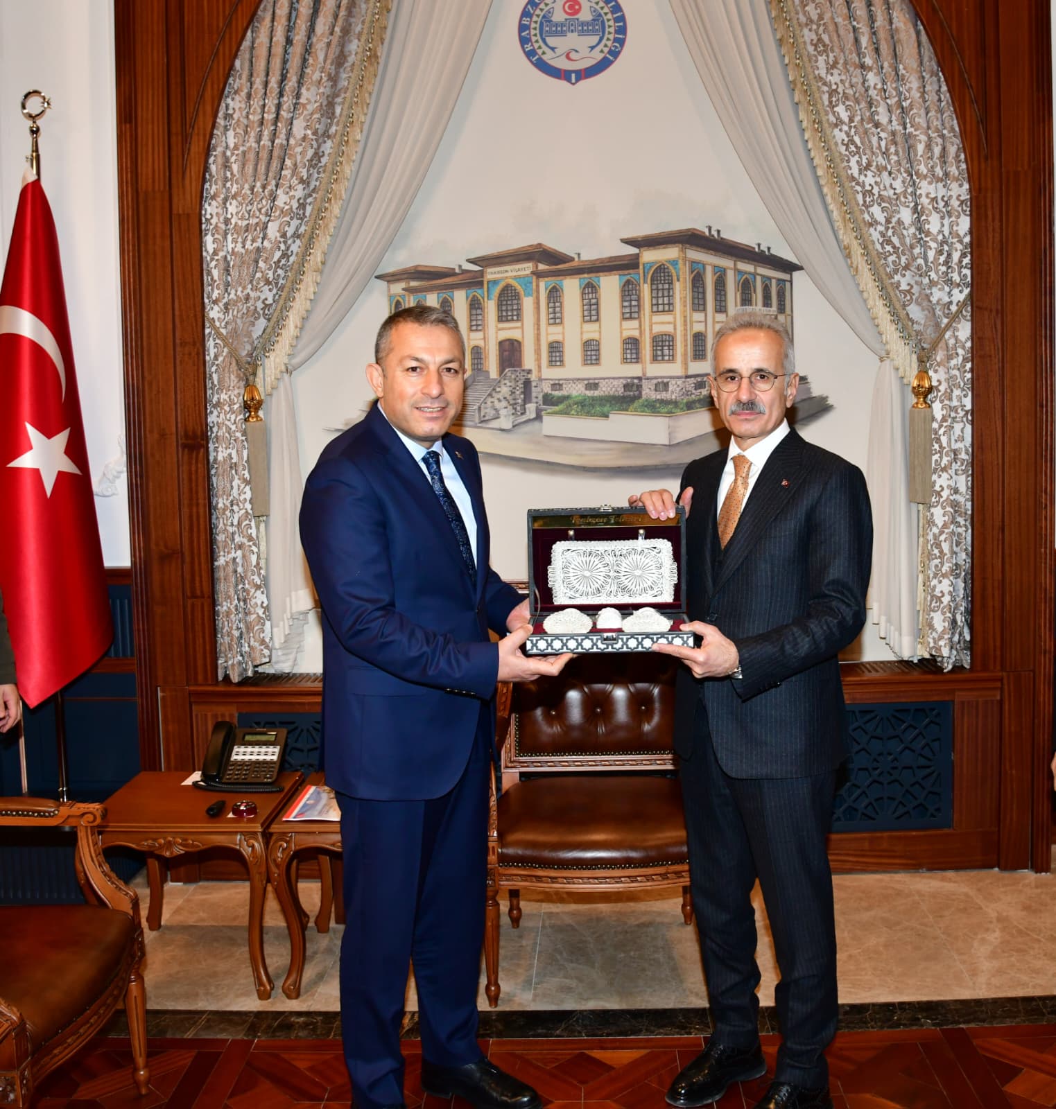 Valilik Şeref Defteri’ni imzalayan Bakan Uraloğlu, ardından makama geçerek Vali Tahir Şahin ile bir süre görüştü. Görüşmede; Trabzon’da devam eden ulaşım projeleri, altyapı yatırımları ve planlanan çalışmalar ele alındı.