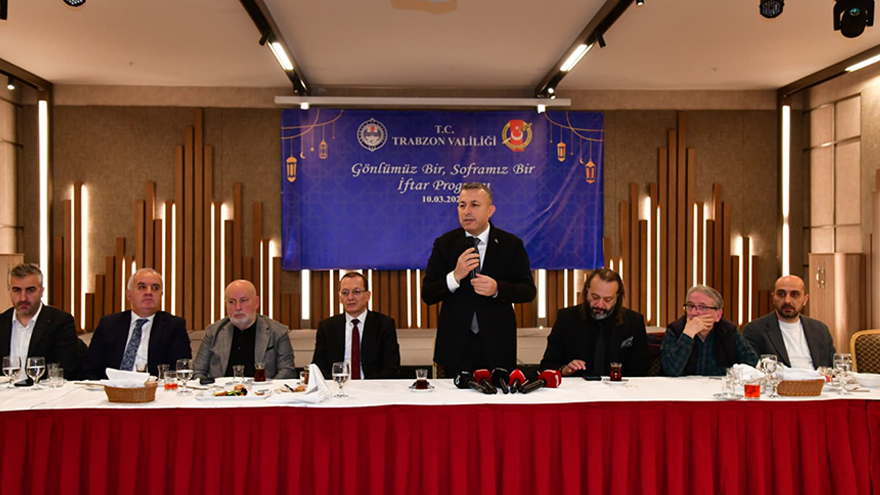 Vali Şahin’in ev sahipliğinde Mercury Otel’de gerçekleştirilen iftar programına Trabzon Gazeteciler Cemiyeti Başkanı Ersen Veda Küçük, Trabzon Büyükşehir Belediyesi Basın ve Halkla İlişkiler Daire Başkanı Ahmet Yoloğlu, Vali Yardımcısı Dr. Ali Yılmaz, Ortahisar Belediyesi Basın ve Halkla İlişkiler Müdürü Elif Çavuş, Trabzon Gazeteciler Cemiyeti üyeleri, Trabzon’daki basın kuruluşlarının imtiyaz sahipleri ve çok sayıda gazeteci katıldı.
