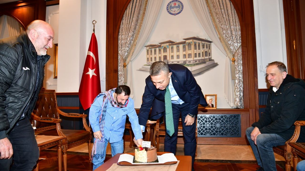 10 Şubat itibarıyla 51 yaşına girdiği öğrenilen Köksal Bektaşoğlu’nun doğum günü, ziyaret sırasında Vali Tahir Şahin tarafından yapılan sürpriz pasta ile kutlandı.